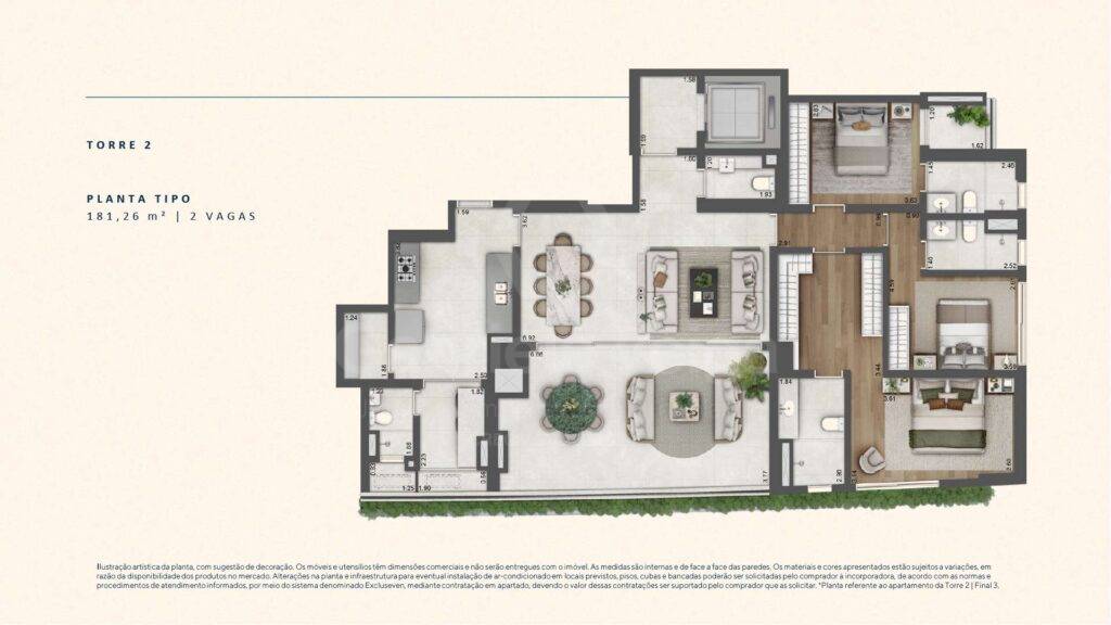 E os apartamentos, então?! Com plantas totalmente flexíveis, pensadas para o seu dia a dia, eles trazem uma ventilação cruzada que você vai amar e vistas que são um presente, como a da nossa icônica Ponte Estaiada. Mais do que morar, este projeto é a afirmação de um novo jeito de viver, é a prova de que a gente pode, sim, ter o construído e a natureza em perfeita harmonia. Isso, sim, é a verdadeira boa arquitetura!”